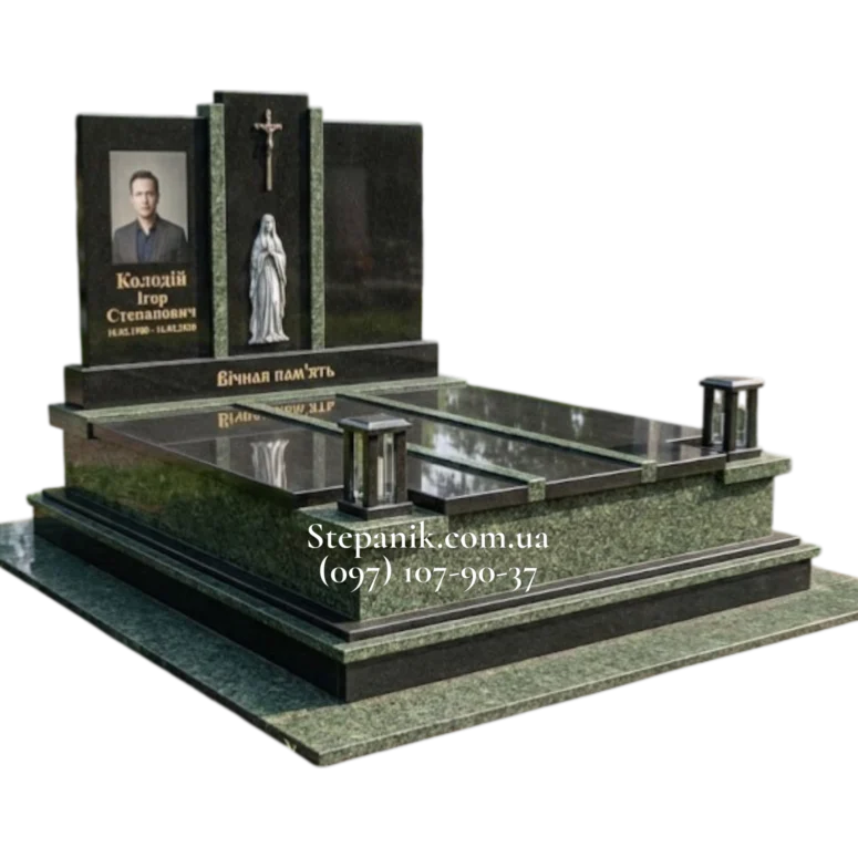 Двійний екслюзивний пам’ятник в строгому європейському стилі зелений з чорним